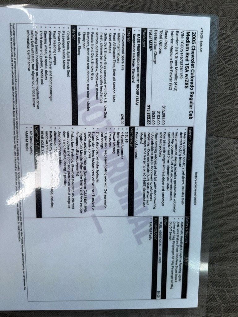 Odometer is 84201 miles below market average! Dark Green Metallic 2005 Chevrolet Colorado RWD 4-Speed Automatic with Overdrive 3.5L 5-Cylinder MPI DOHC