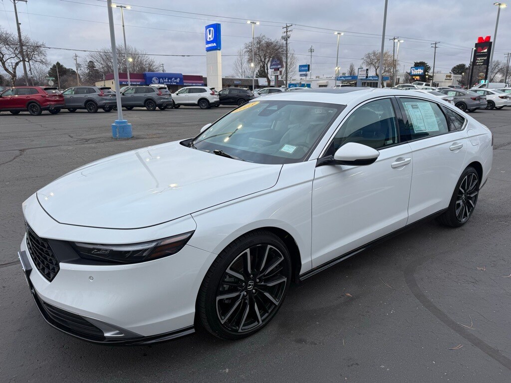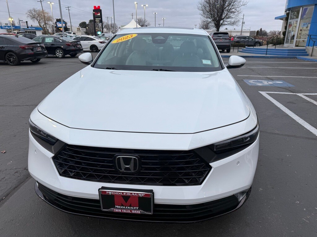 Odometer is 4982 miles below market average! Platinum White Pearl 2023 Honda Accord Hybrid Touring FWD eCVT 2.0L 16V DOHC